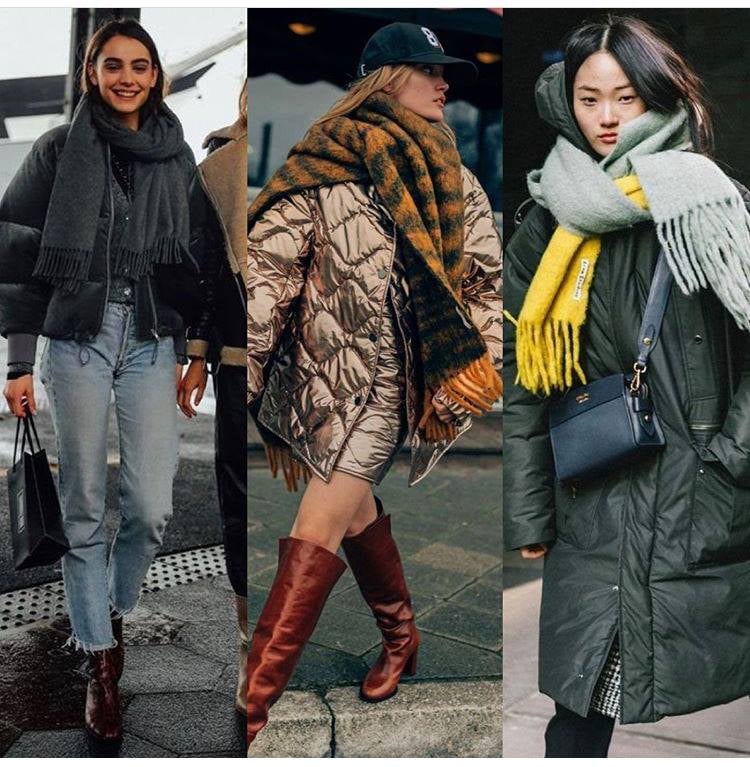 Кольорові і принтовані шарфи - актуальні, головне, щоб ви змогли їх стилізувати. А як носити - дивіться на фото.