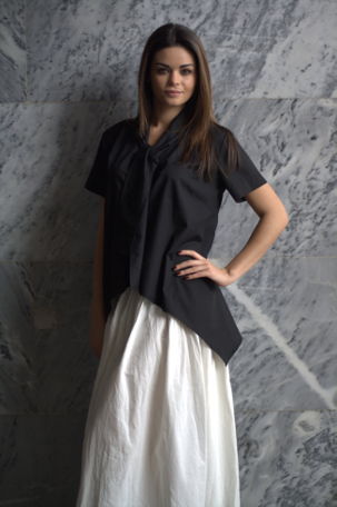 В найбільш класичну комбінацію "білий верх, чорний низ" внести різноманітність допоможе також фасон блузи і спідниці: асиметричний крій, незвична форма вирізу чи коміра...