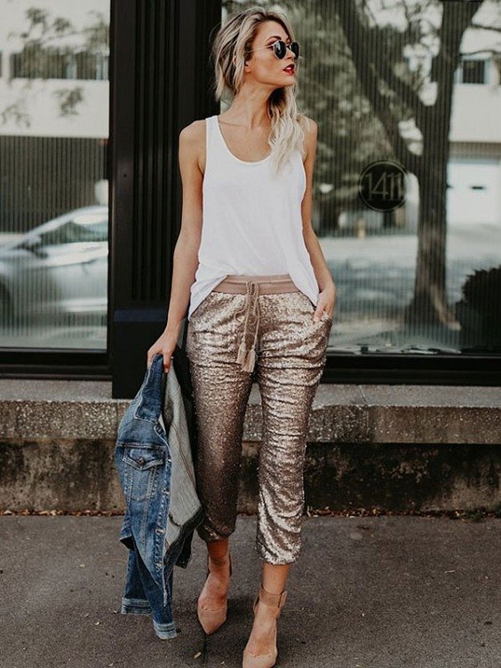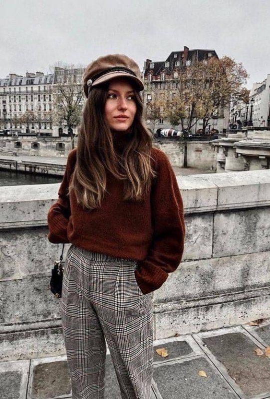 Для затишного і теплого образу можна одягнути вкорочений светр або светр, заправлений в штани, або яскраву футболку з актуальним пуховиком. Але навіть при створенні комфортного образу можна додати трохи жіночності за допомогою зачіски, макіяжу, витончених аксесуарів на вуха або шию.