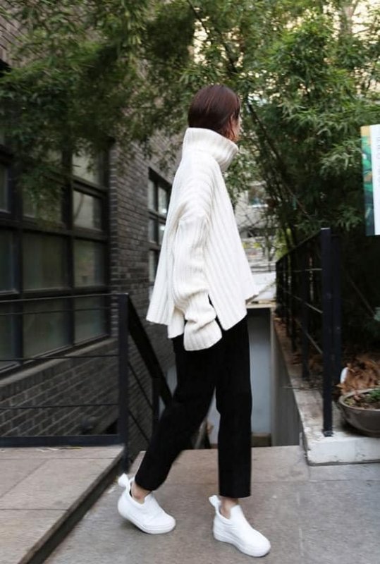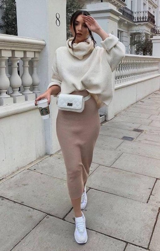 Отож, давайте подивимося, з чим можна носити такий фасон светра в цьому сезоні.