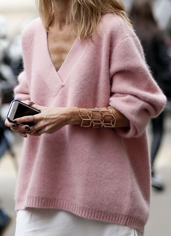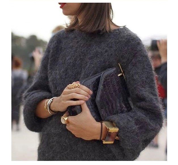 Об'ємне — светр і вузьке — ваше зап’ястя. В результаті отримуємо просте, модне і цікаве поєднання. Браслети можна замінити манжетами, які будуть виглядати з під рукавів.