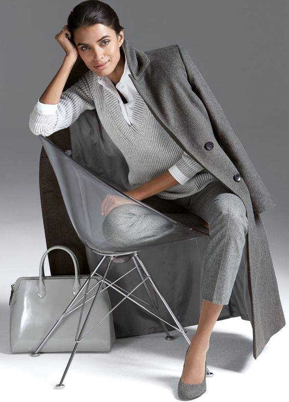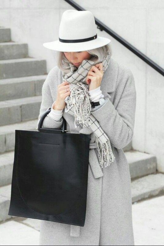 Принцип № 2 - ахроматичні образи, тобто, коли в комплекті є речі білого, сірого та чорного "кольорів". Можна поєднувати сірий з білим, білий з чорним або білий, сірий та чорний одночасно. Такі комплекти виглядають вишукано та елегантно.