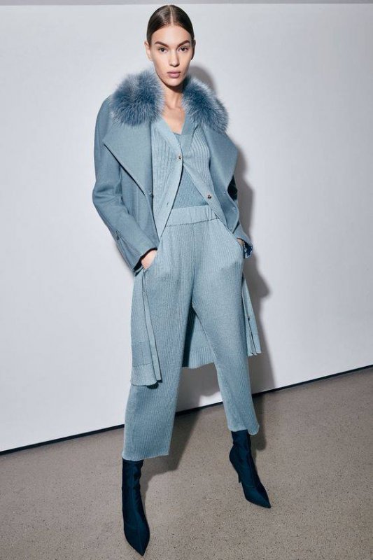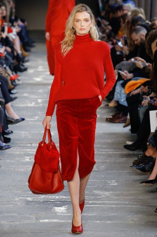 3. Крім відтінків важливо комбінувати і фактури, щоб створити динаміку і об’єм одноколірного ансамблю. Поєднуйте трикотаж і замшу, напівпрозорі тканини і шкіру, оксамит і мереживо. Не бійтеся використовувати паєтки, хутро та інші елементи декору.