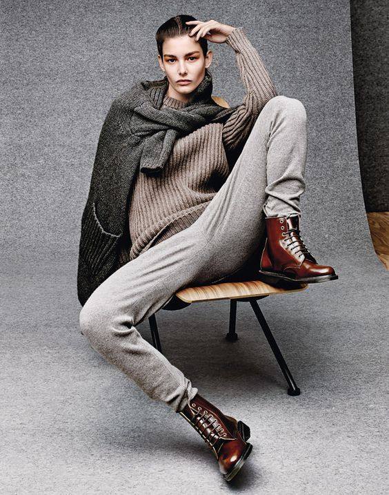 Принцип № 3 - поєднання речей нейтральних кольорів (сірий, бежевий, пісочний, коричневий, хакі) або кольорів з великою кількістю сірого (приглушений рожевий, сіро-зелений, сіро-синій та інші). Враження від таких комплектів - спокій, затишок, природність.