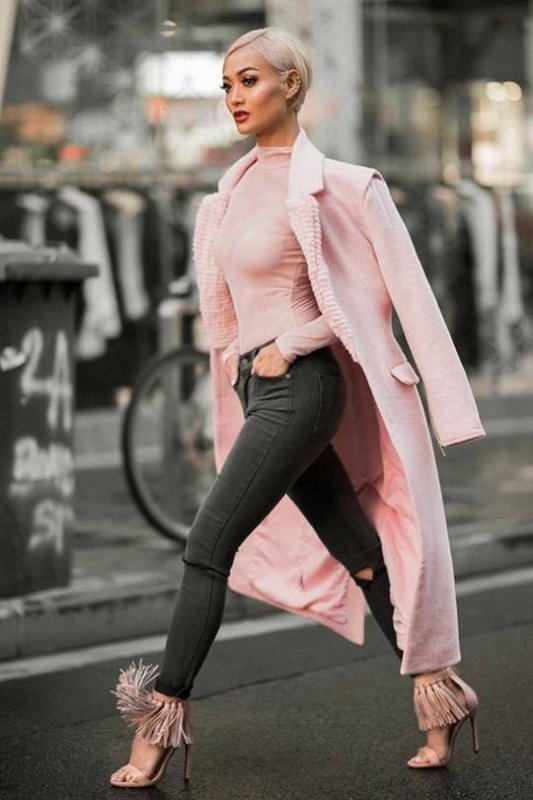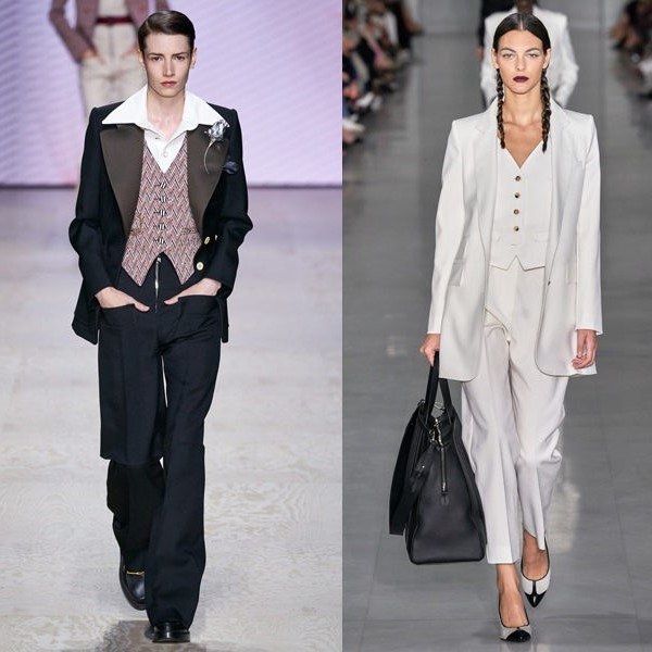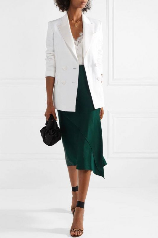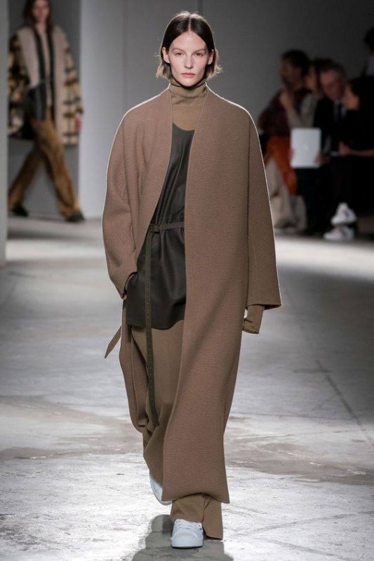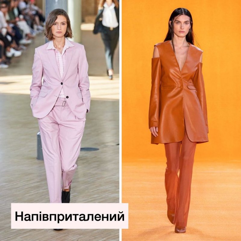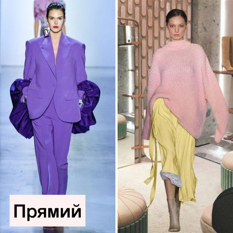 Зараз, наприклад, модними є одночасно 3 силуети. Це — вільний прямий покрій, напівприталений і приталений. Всі вони актуальні. Розглядайте картинки. Самий сучасний силует — приталений. Талія стягнута, а в плечах об’єм. Не плутайте із застарілим силуетом в обтяжку.
