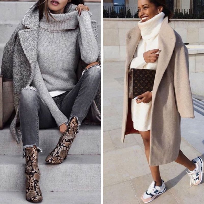 НЕ варто починати своє знайомство з пальто в спортивному стилі, вкороченого, асиметричного, з елементами у вигляді трикотажу або з капюшоном, а також з кольоровими або графічними елементами. Така річ буде складно поєднуватись з чимось ще, крім спортивного одягу.