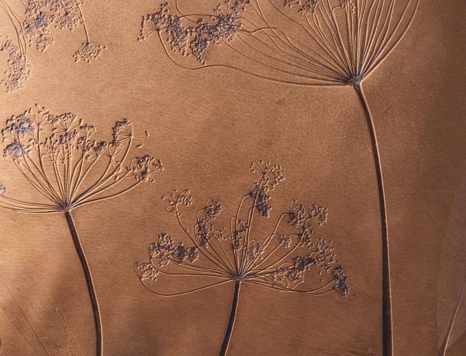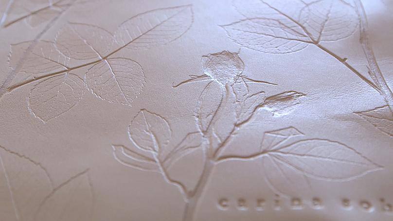 Каріна Сол створює вироби зі шкіри, прикрашаючи їх відбитками квітів і листків рослин. Роботи шведського дизайнера користуються великим попитом у дорогих брендів. Кожен малюнок неповторний і унікальний.