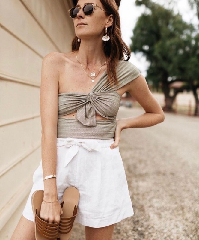 Модні фасони купальників. Топ з бретельками навхрест - бретельки топа спочатку перехрещуються спереду, а потім зав'язують на спині.