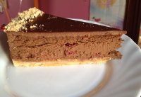 На прохання рецепт шоколадного тортика. коржі -це шоколад на кип"ятку, а крем робила з того,що було: 1 б. вареного згущ. молока + 2п масла + 2-3 ложки какао+ сироп до кави горіховий пару ч.ложок, і грецькі горіхи.