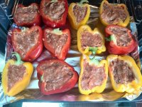все елементарно: начинка така, як на голубці(рис півготовий, сирий м"ясний фарш будь-який, спасерована морква з цибулькою, можна додати ще порізану зелень - кріп-петрушку, сіль і спеції до смаку). Перець розрізається на половинки. Головне не виймати той зелений хвостик, щоб потім в процесі готування не вилазила начинка. Заморожую кожен завернутий в пакетик маленькі такі для заморозки в Ашані купую Сирі готуються 45хв накриті фольгою+15хв затерті сиром, а заморожені годину+15хв. минулого року робила братові мк покроковий --- дописи об"єднано, 15 Серпень 2016 --- так, ставлю з холодною олією. Траву сиплю суху - прованські або італійські. Часник не кладу, бо я його не люблю.