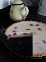 Полуничний чізкейк за рецептом Kulinarium master. Треба було ще зверху половинками полуниць прикрасити, але їх зжерли.